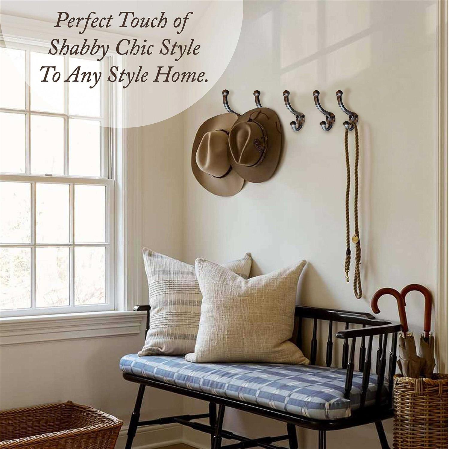 Rustic Cast Iron Coat Hooks (5 Pack) Wall Mounted Farmhouse Decorative Wall Hooks, Vintage Hooks for Hanging Coats, Bags, Hats, Towels (Antique