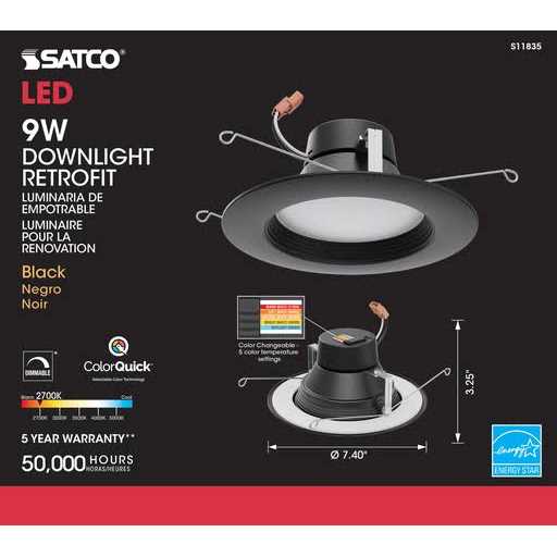 LED Downlight Retrofit, 27-50K, Black by Satco S11835