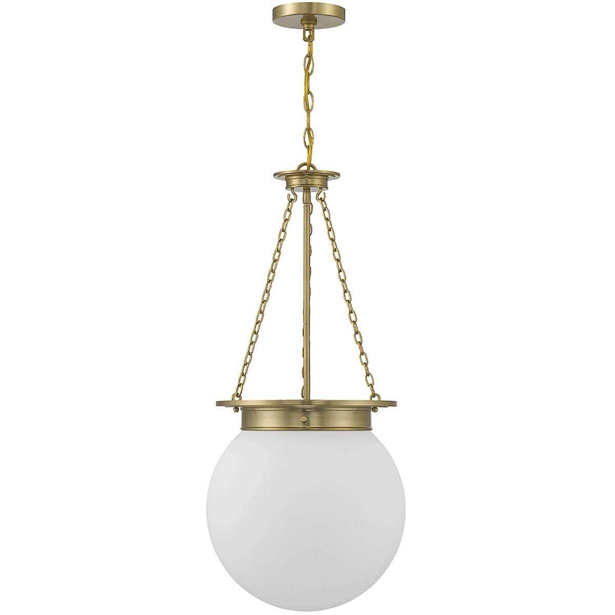 The Savoy House Manor 3-light pendant proves that a classic style can be stunning! An orb-shaped shade of white opal glass hangs down from an understated structure with timeless details. Finished in warm brass. Manor is 31” in height and 13.5” in width. It uses 3 candelabra size bulbs of up to 60 watts per bulb (bulbs not included).