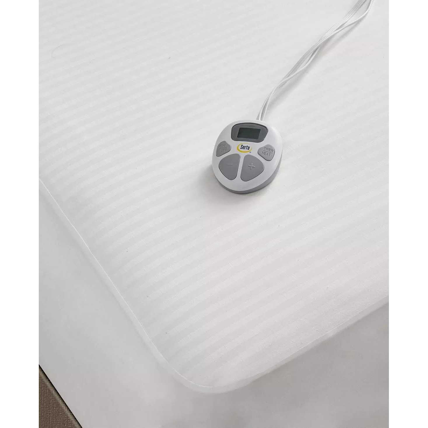 The Serta Waterproof Heated Mattress Pad provides added comfort and protection to the top of your mattress. This soft heated mattress pad features a waterproof top fabric that helps preserve the quality and comfort of your mattress. A controller with 10 heat settings provides the perfect amount of warmth, while the 1-12 hour automatic shut-off timer helps ensure your safety. Machine washable for easy care, this waterproof heated mattress pad brings cozy comfort to your bed. Twin and Full size have one controller, Queen and King size have 2 controllers.