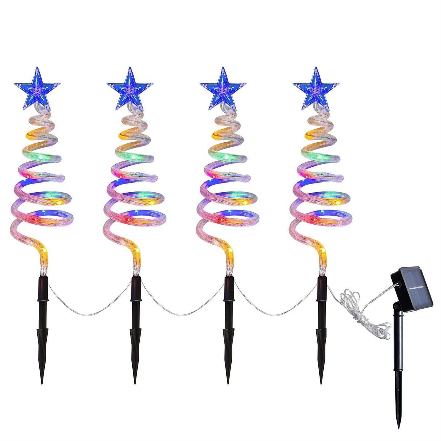 Set of 4 Spiral Christmas Tree Pathway Lights Solar Powered Pre-lit 40 LEDs Pathway Markers Stake Outdoor Christmas Decoration for Path