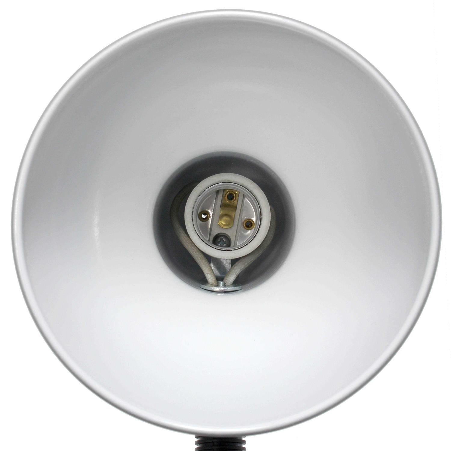 For tasks and working environments, this hose neck metal desk lamp offers a classic charm in a traditional space. Soften the design of a home office or kitchen desk with this lamp from the Basic collection by All the Rages. Tempting touches feature a silver finish metal shade with a sleek hose neck stem. A round base offers easy operation with an on-off rocker switch. This lamp is a great choice for a child’s room or college dorm.