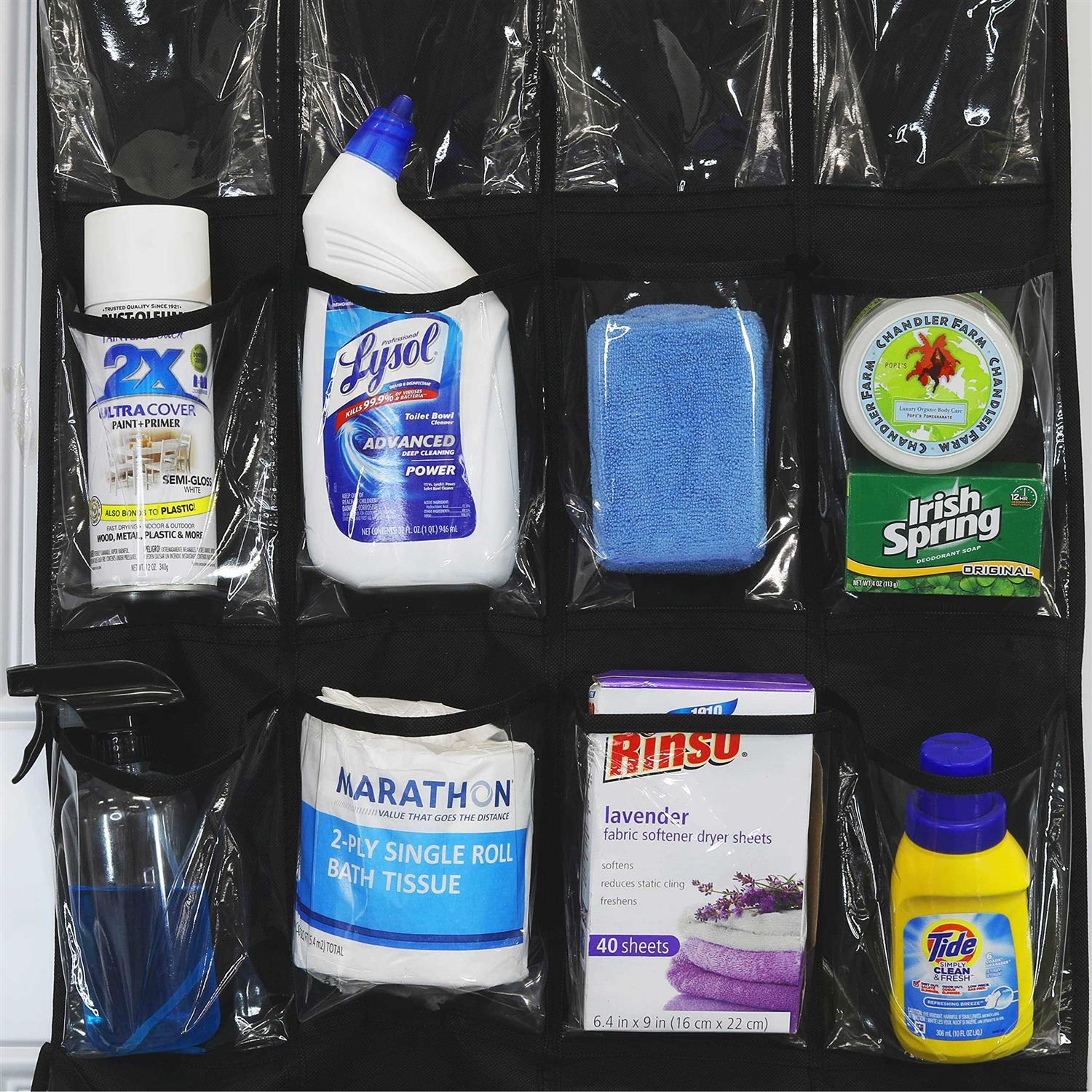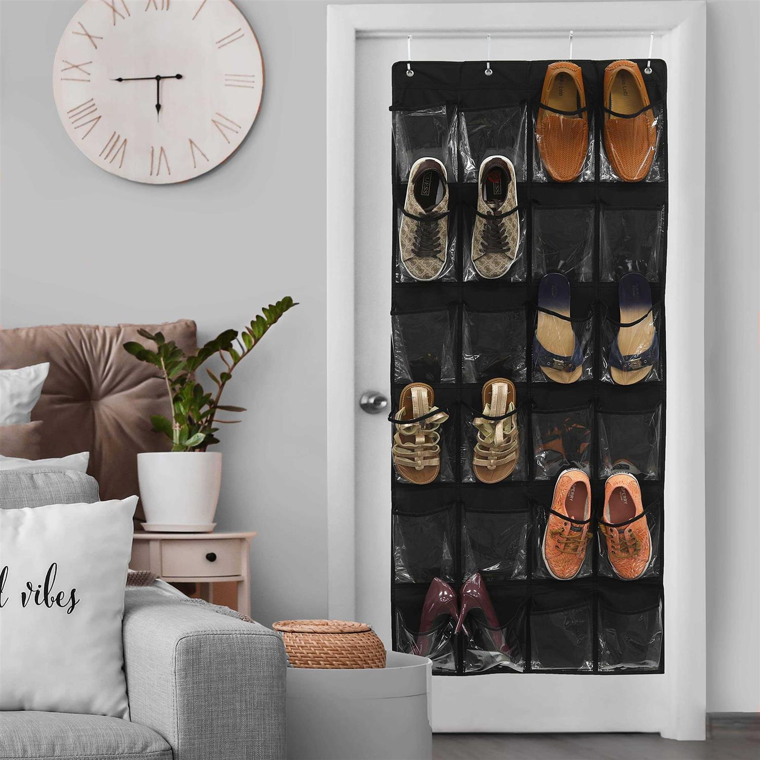 - 24 Pockets – SimpleHouseware Crystal Clear Over The Door Hanging Shoe Organizer, Black (64” x 19”)