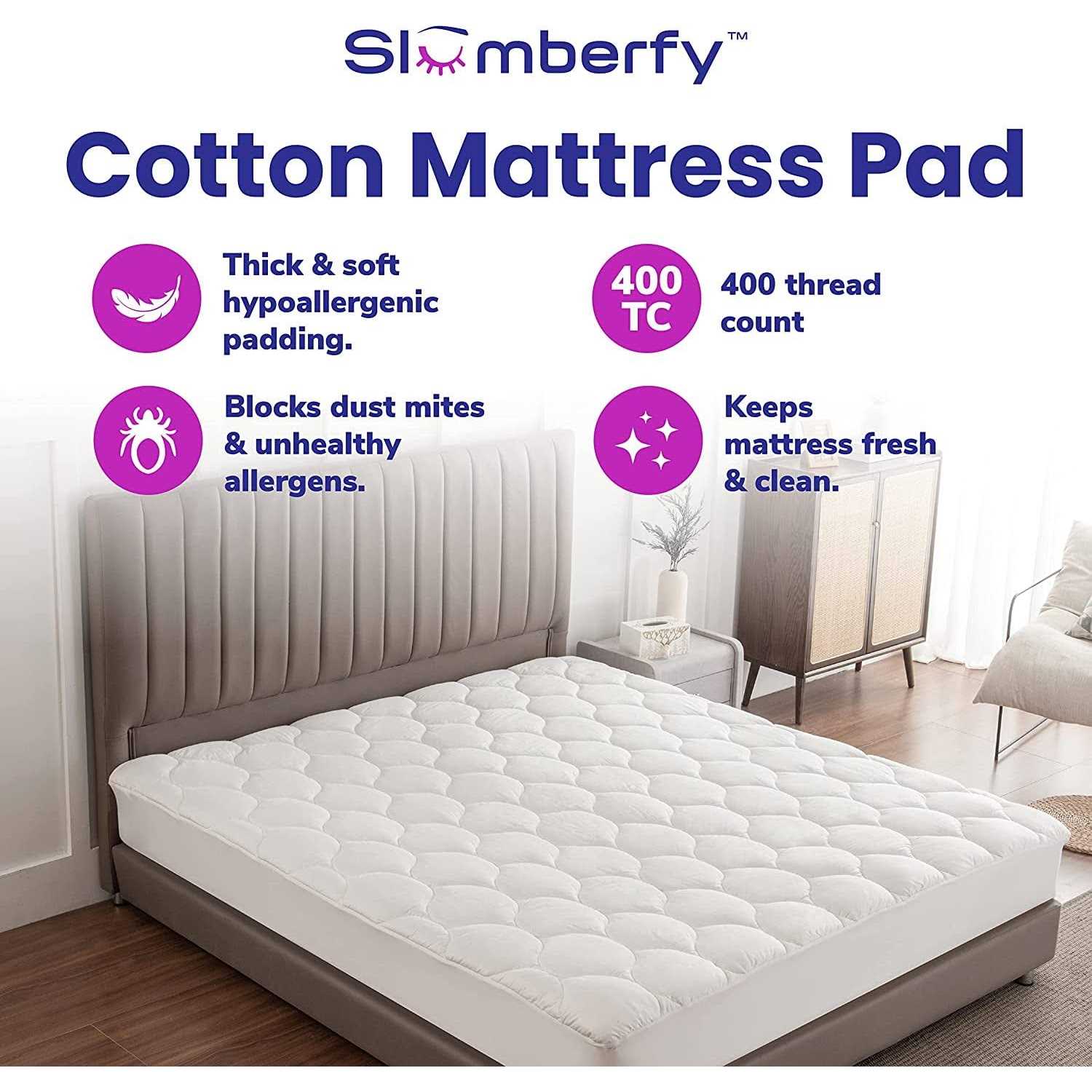 Slumberfy Waterproof Mattress Pad Hypoallergenic Mattress Pad