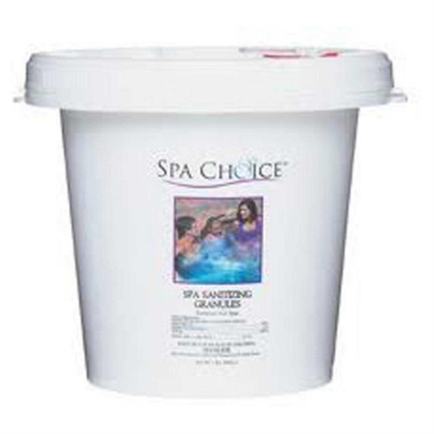 Spa Choice Sanitizing Granules are designed to dissolve quickly and completely. Chlorine granules provide a steady source of available chlorine to spa water to control algae growth, kill bacteria and destroy organic contaminants. Spa choice chlorine granules are stabilized to protect against ultraviolet radiation from the sun, increasing the life of your chlorine.