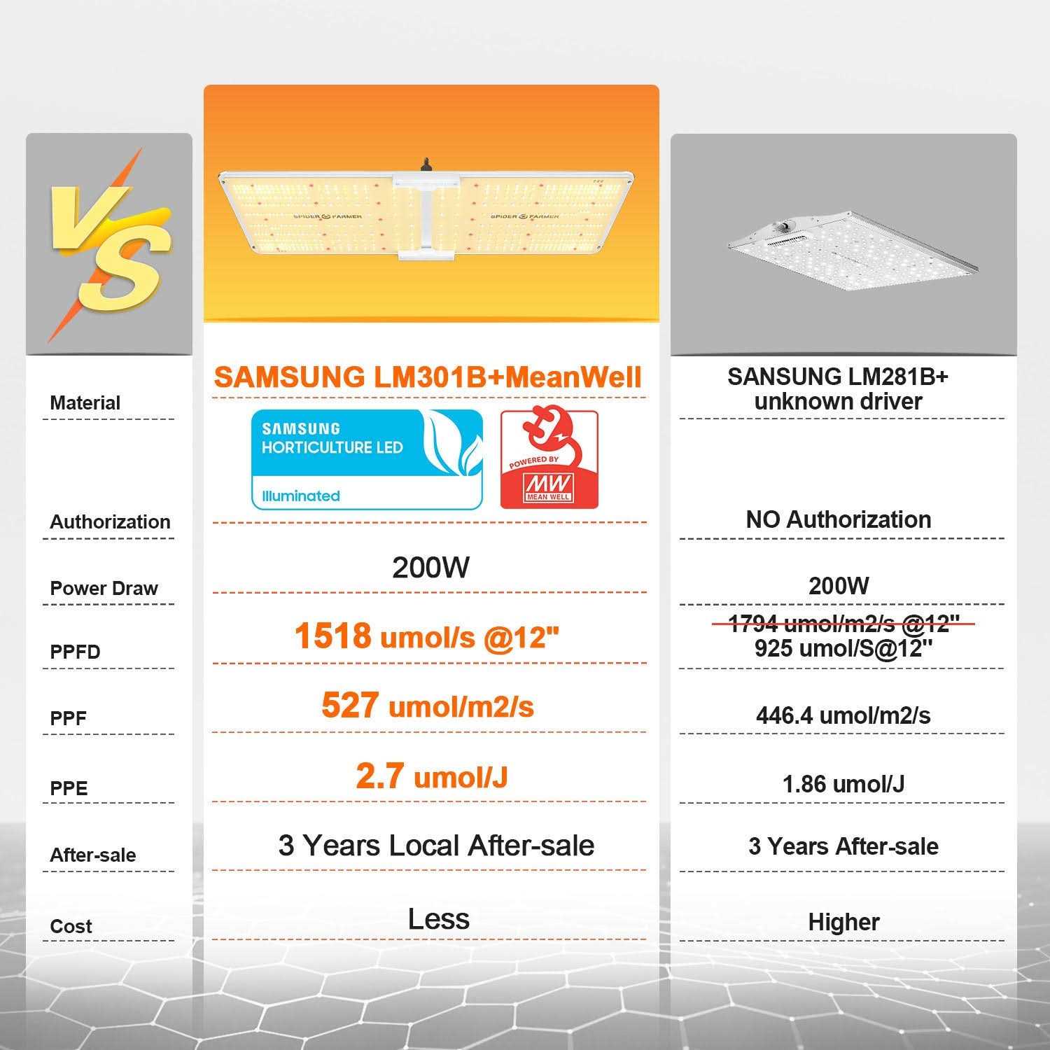Spider Farmer SF2000 200W LED Grow Light with Dimmer Knob