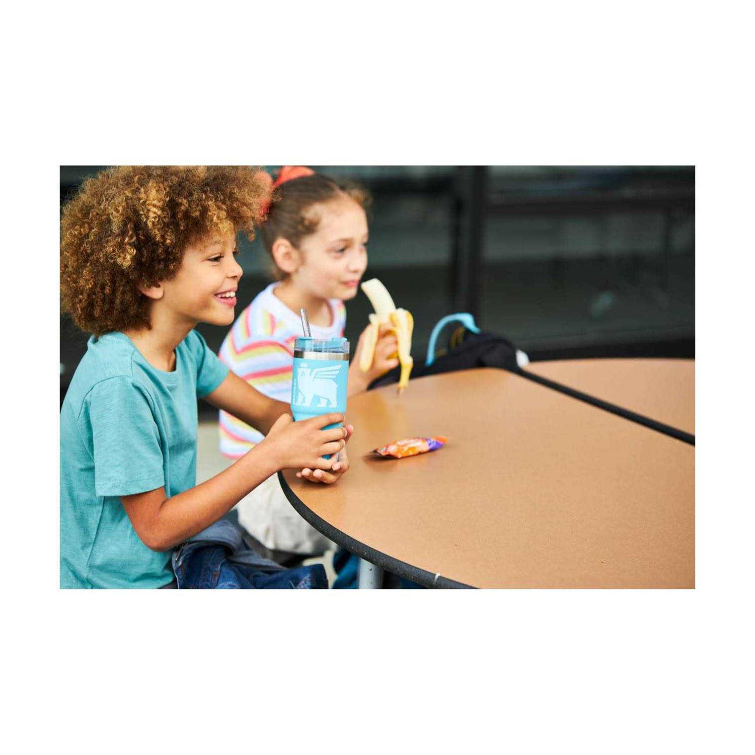 Say hello to our smallest and lightest Quencher. Fill this 14 oz tumbler with water to keep your child hydrated. Its perfectly sized for kids use, from their favorite morning refresher to playtime and bedside hydration. Whatever your childs beverage preference, the vacuum insulation will keep things at the ideal temperature while they drink. The lid features a rotating cover with three positions: an opening for the reusable straw, an opening for sipping, and a full-cover top to prevent splashes.