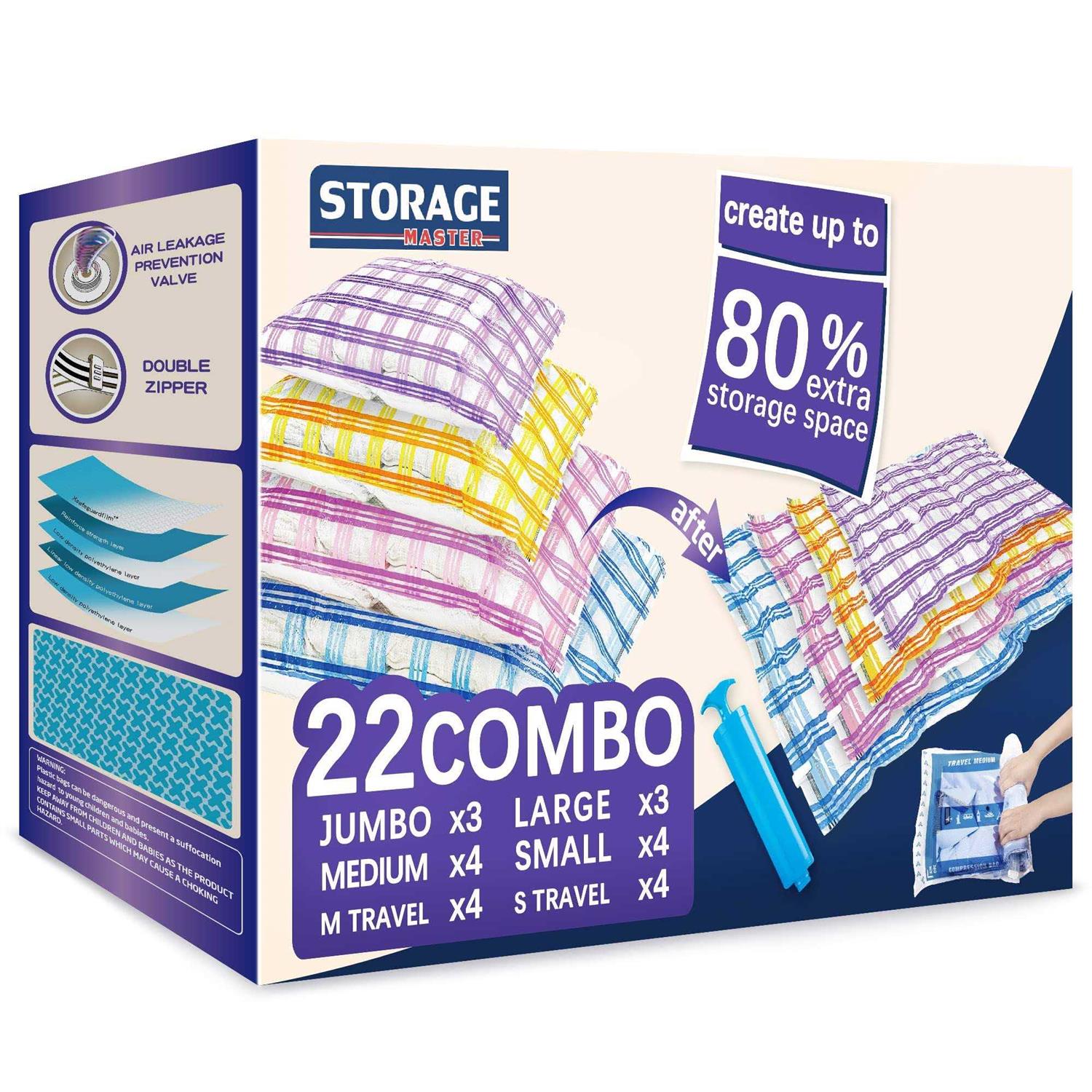 Storage Master 26 Space Saver Vacuum Storage Bags for Clothes, Airtight Vacuum Sealed Space Saver Bags for Blankets and Comforters