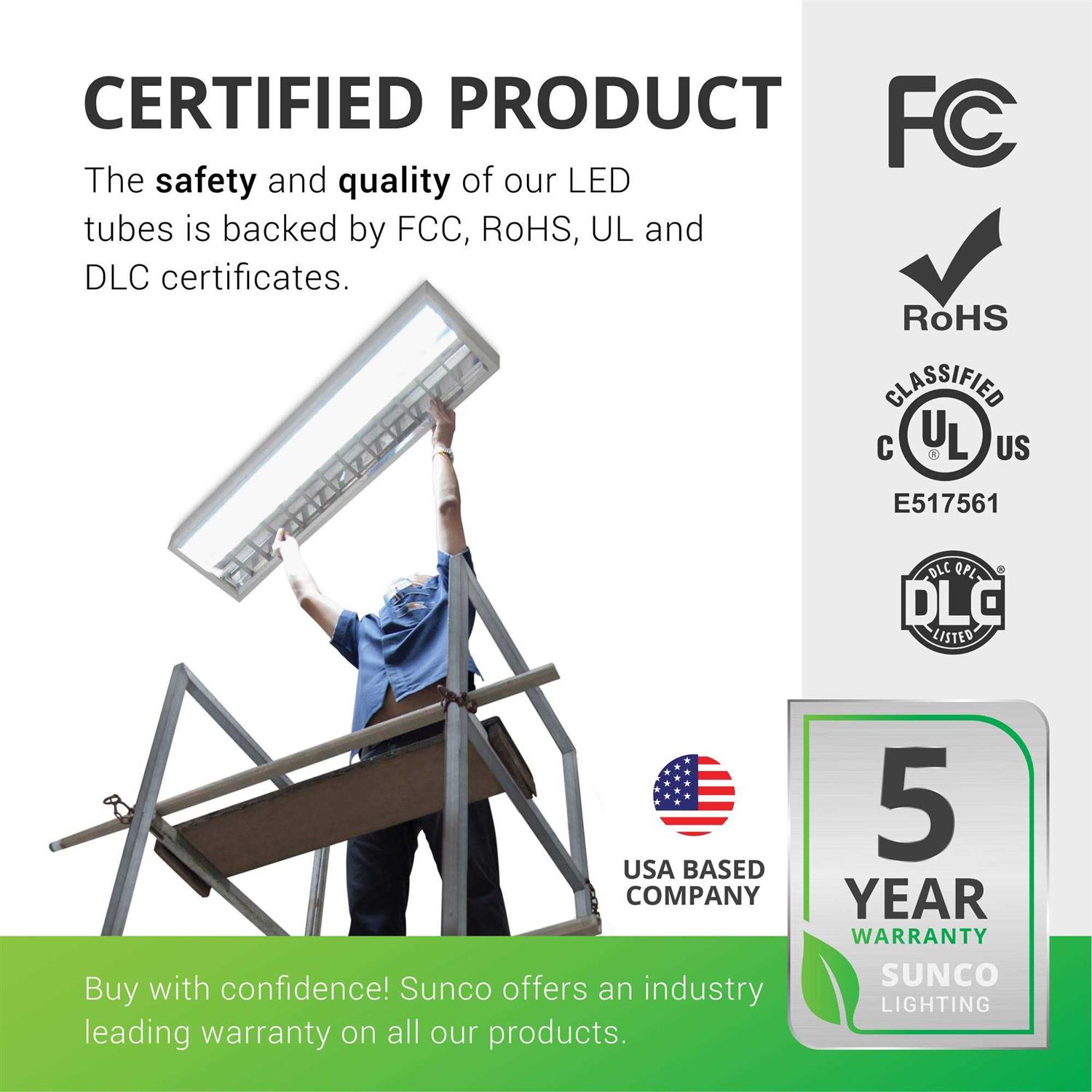 Sunco Lighting 24 Pack 4ft T8 LED Tube 15w=32w Fluorescent