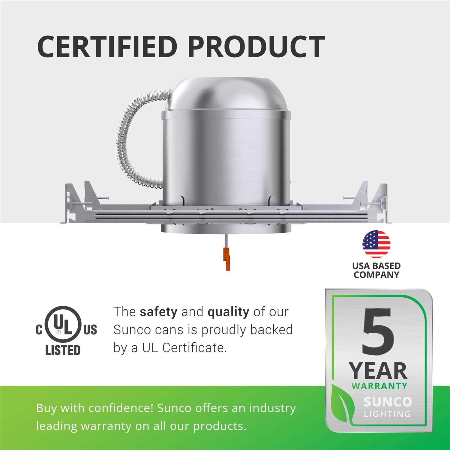 Sunco Lighting 12 Pack 6 inch New Construction LED Can Air Tight IC Housing, Rec