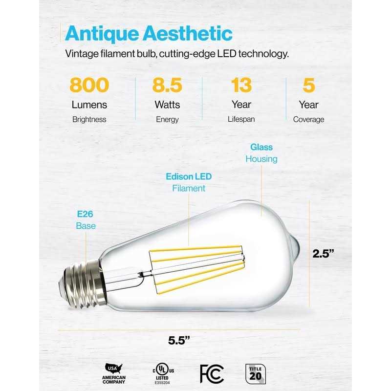 Top Rated Dimmable ST64 LED Bulb E26 Base DIMMABLE – Seamless dimming capabilities (10%-100%) that fit any mood or decor. Our ST64 LED lights combine charming vintage design with the latest in LED technology. Ideal applications include restaurants, hotels, lamps, and exposed fixtures/pendants. WATERPROOF – Our LED ST64 bulbs are weatherproof and can stand up to the elements. Durable dust-tight construction that provides you reliable bright light in any weather. Sunco’s LEDs are the sustainable choice offering a longer lifetime than traditional bulbs (halogen, incandescent, fluorescent) and reduced relamping costs.