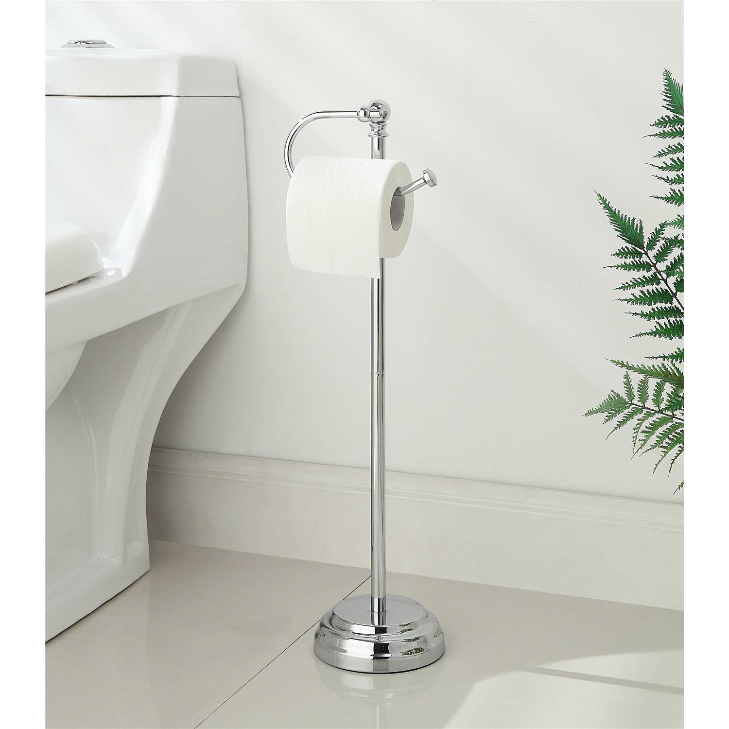SunnyPoint Classic Bathroom Free Standing Toilet Tissue Paper Roll Holder Stand Brush Chrome