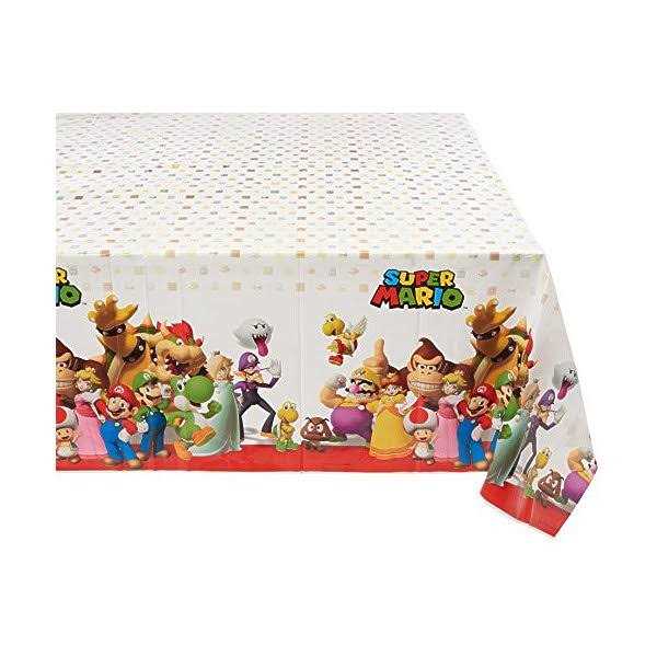 Your child’s guests will have an exciting time celebrating around this Super Mario table cover! The table cover features favorite characters Mario, Luigi, Princess Peach, Yoshi, Bowser, and many more. The table cover measures 54 inches x 96 inches and fits most tables. It’s also disposable, providing quick and easy cleanup. Coordinate with other Super Mario-themed tableware!