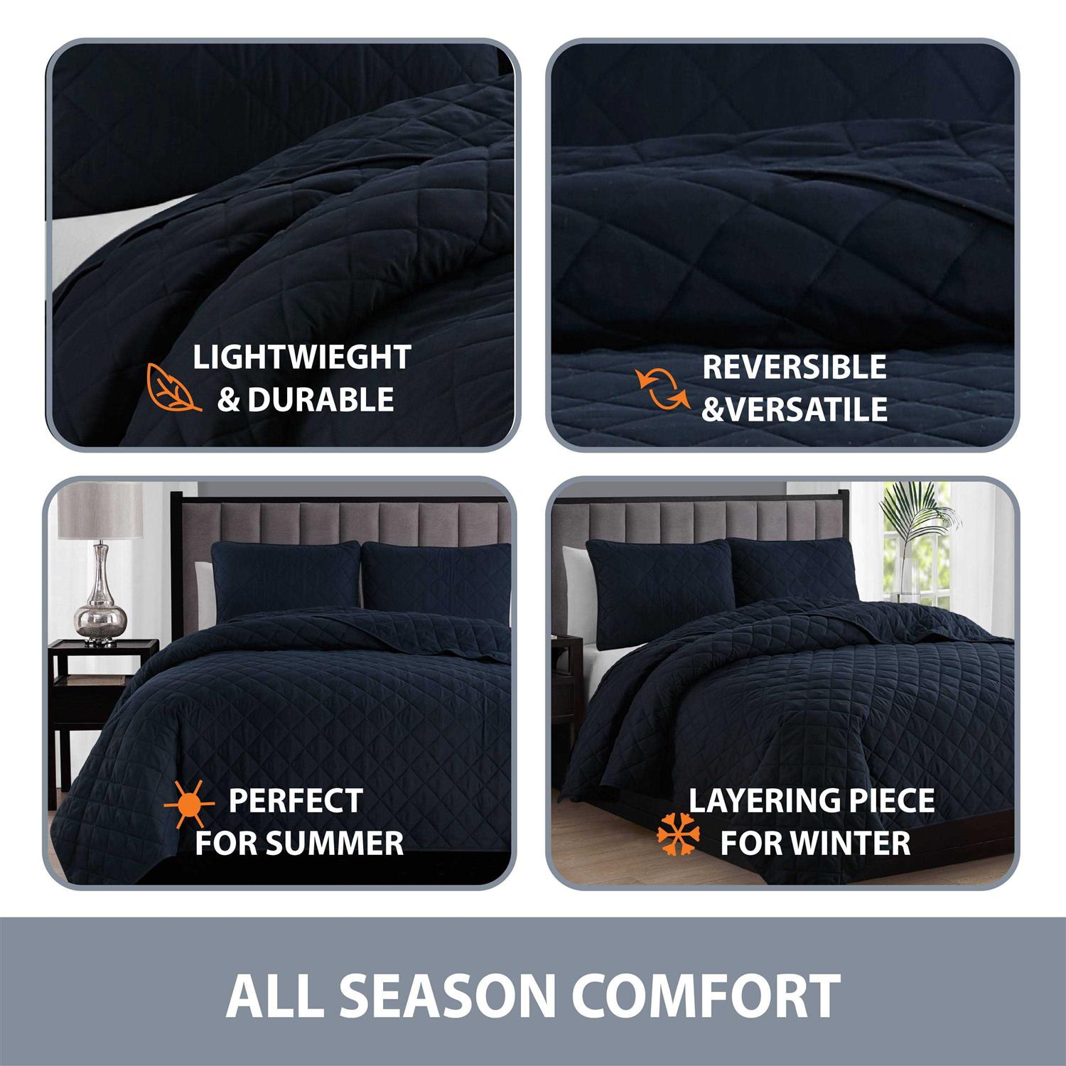 Swift Home Navy Diamond Stitch Quilt Bedspread Coverlet Set – Full/Queen