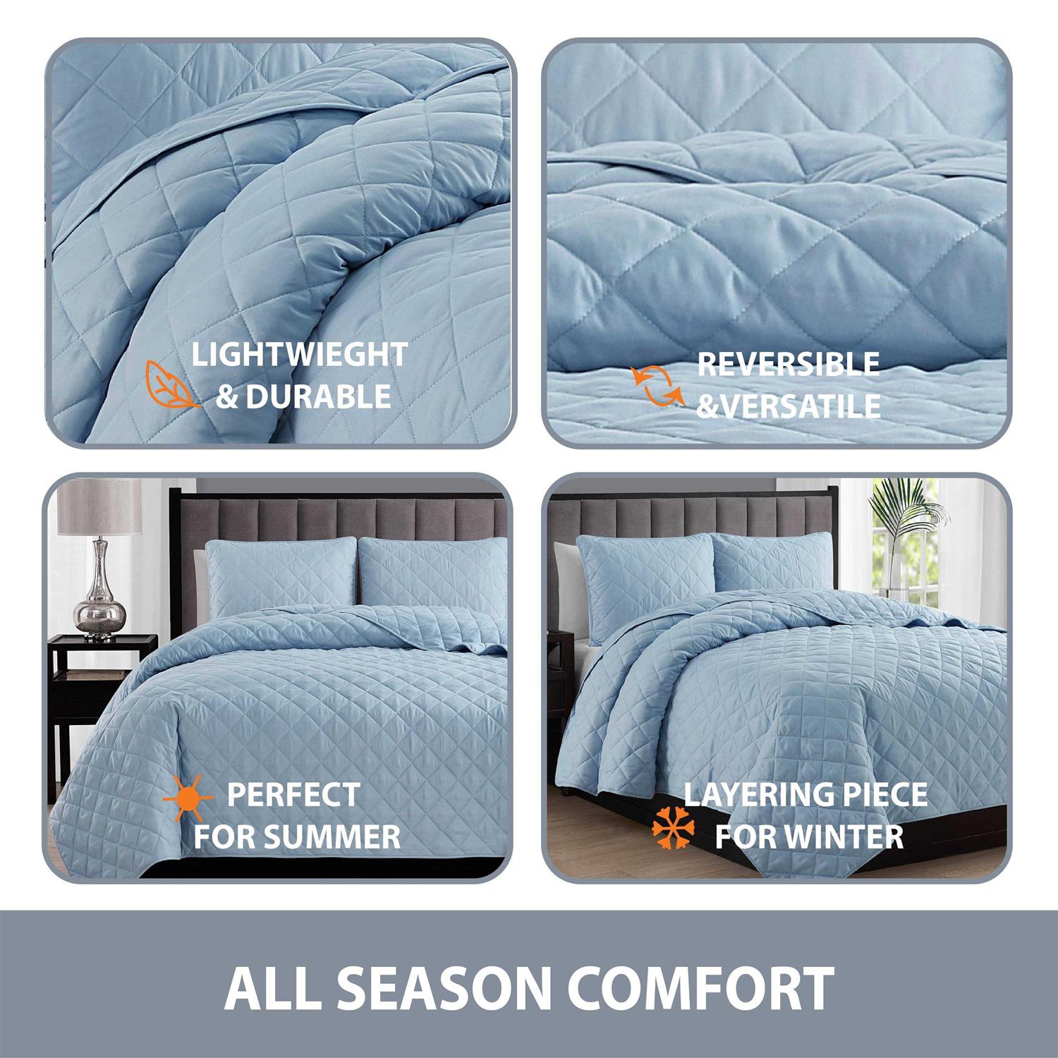 Swift Home Diamond Stitch Quilt Set, Blue, Twin