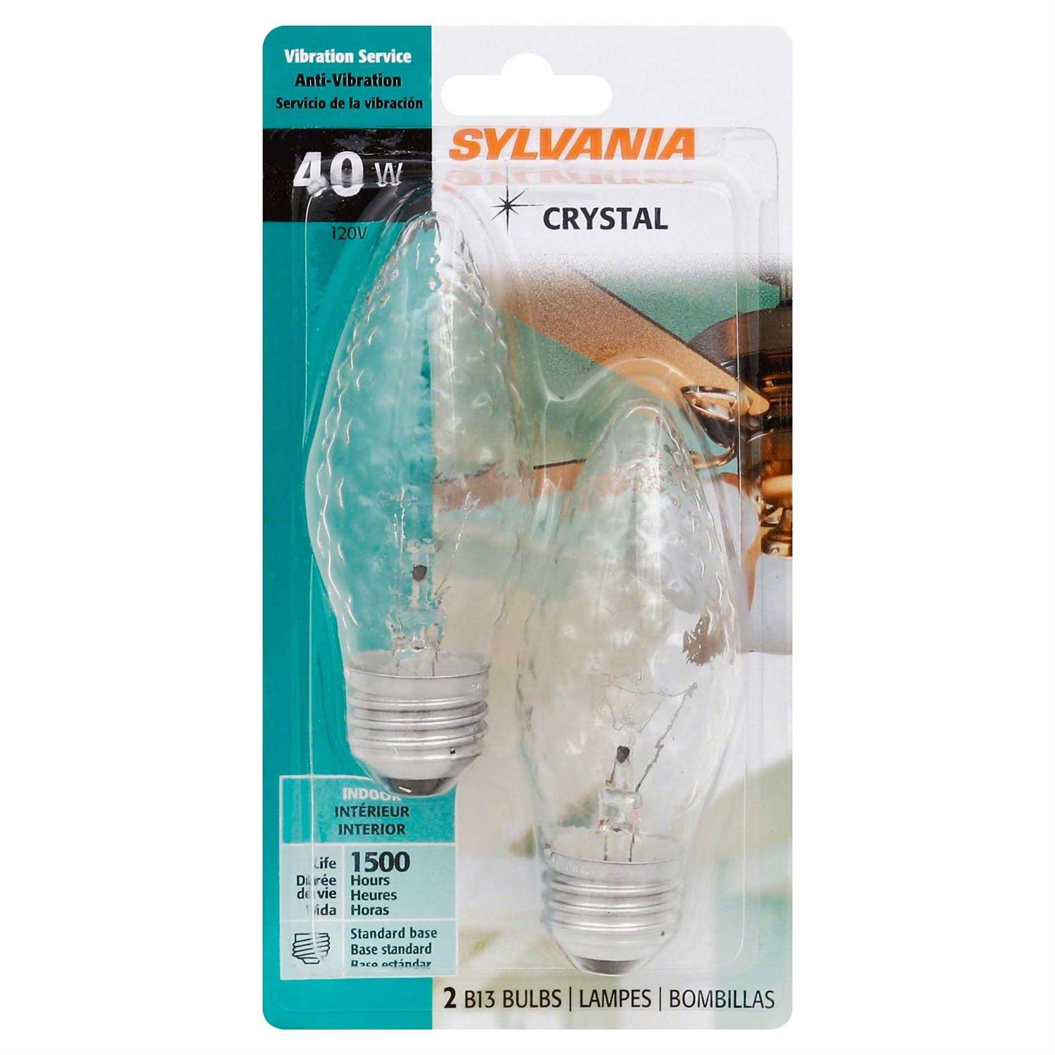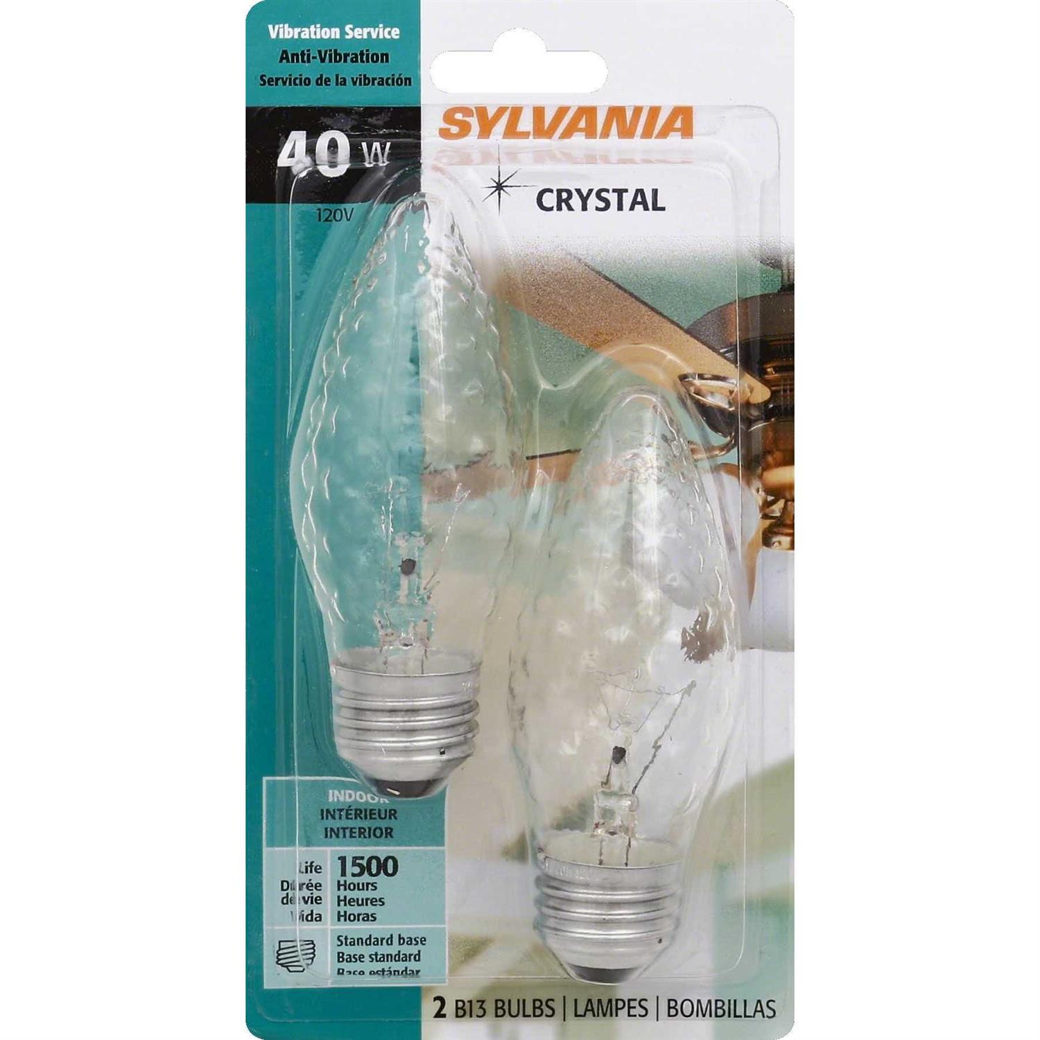 Sylvania Light Bulbs, Ceiling Fan, Indoor, Standard Base B13, Crystal, 40W – 2 light bulbs