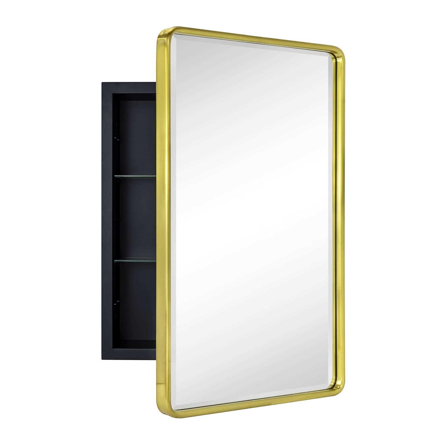 TEHOME Farmhouse Recessed Metal Bathroom Medicine Cabinets with Mirror 24 inch x 16 inch