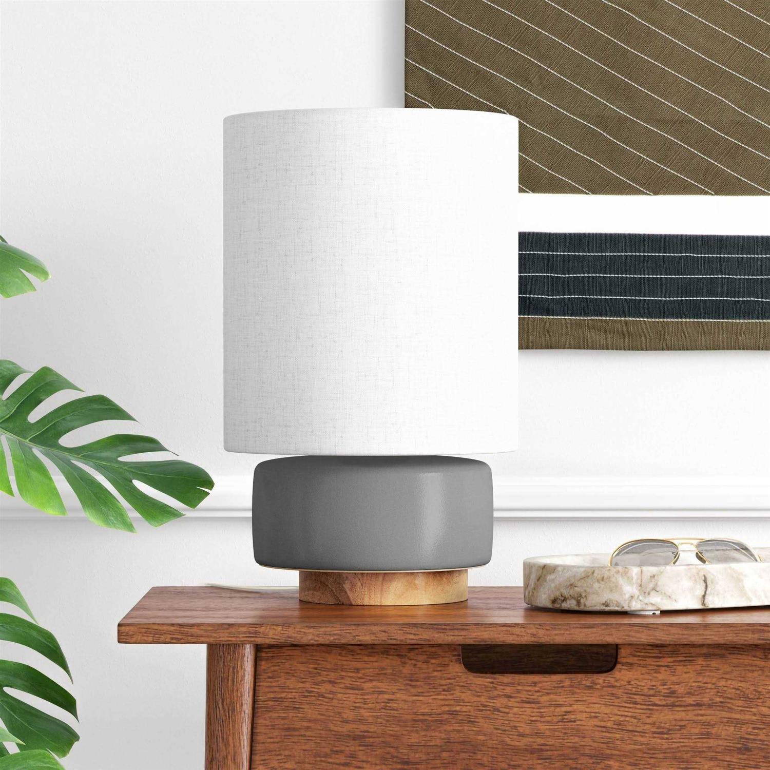 Bring chic style to any tabletop with the Ceramic Table Lamp with Wood Base from Project 62 . Topped with a linen drum shade that softens the light, this decorative table lamp stands atop a shapely round tiered base made of gray ceramic and tan wood for an attractive look. Place it on an end table or nightstand to complete the look of your space. 1962 was a big year. Modernist design hit its peak and moved into homes across the country. Project 62 embodies this legacy with a collection of modern pieces made for everyday living.