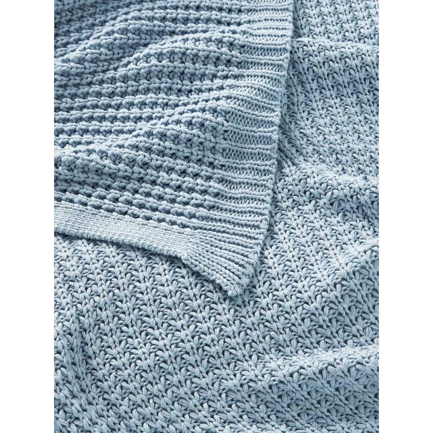- Made with 100% organic cotton, the knitted texture of this warm blanket throw is both stylish and warm