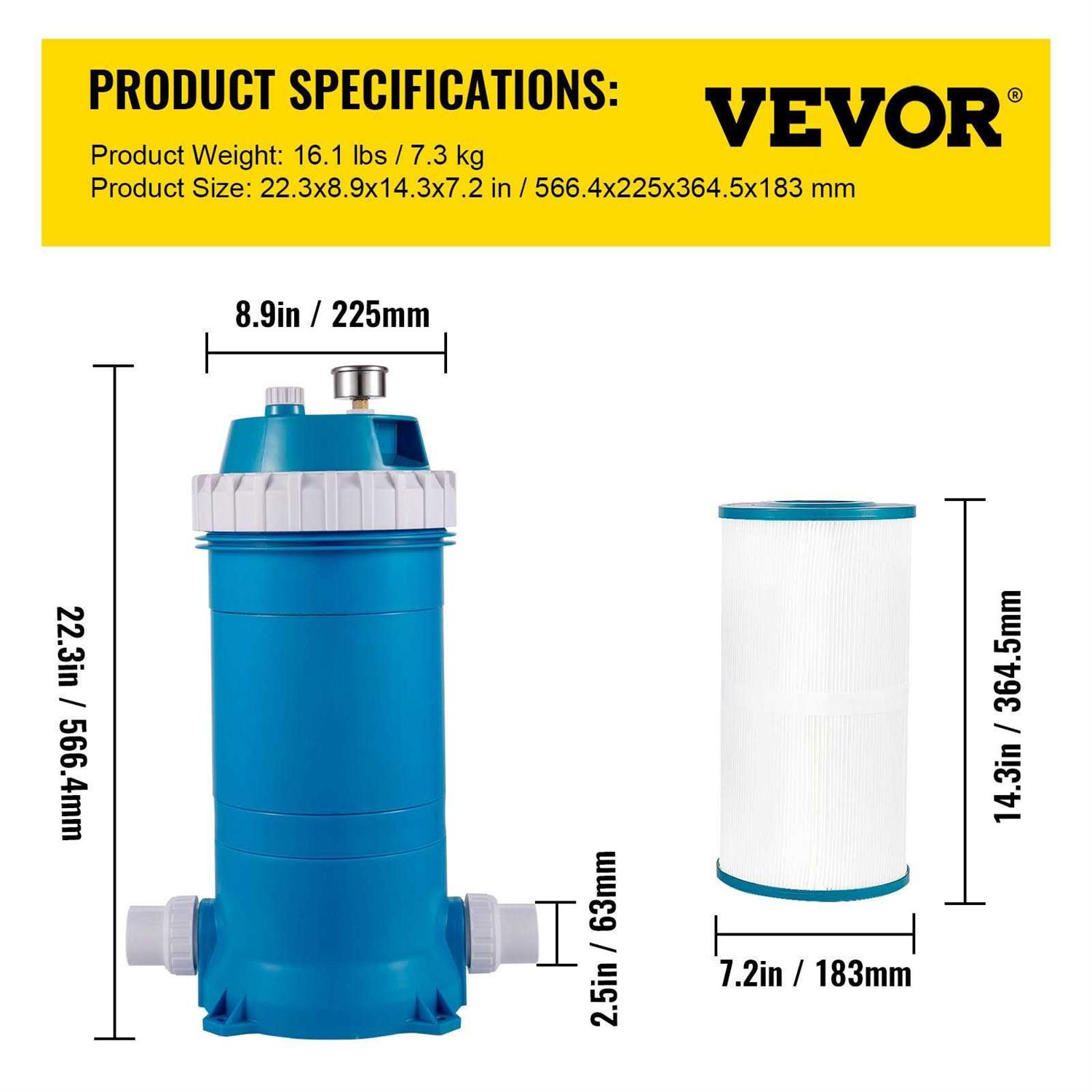 - Vevor Pool Cartridge Filter In/above Ground Swimming Pool Filter 50sq. Ft Filter