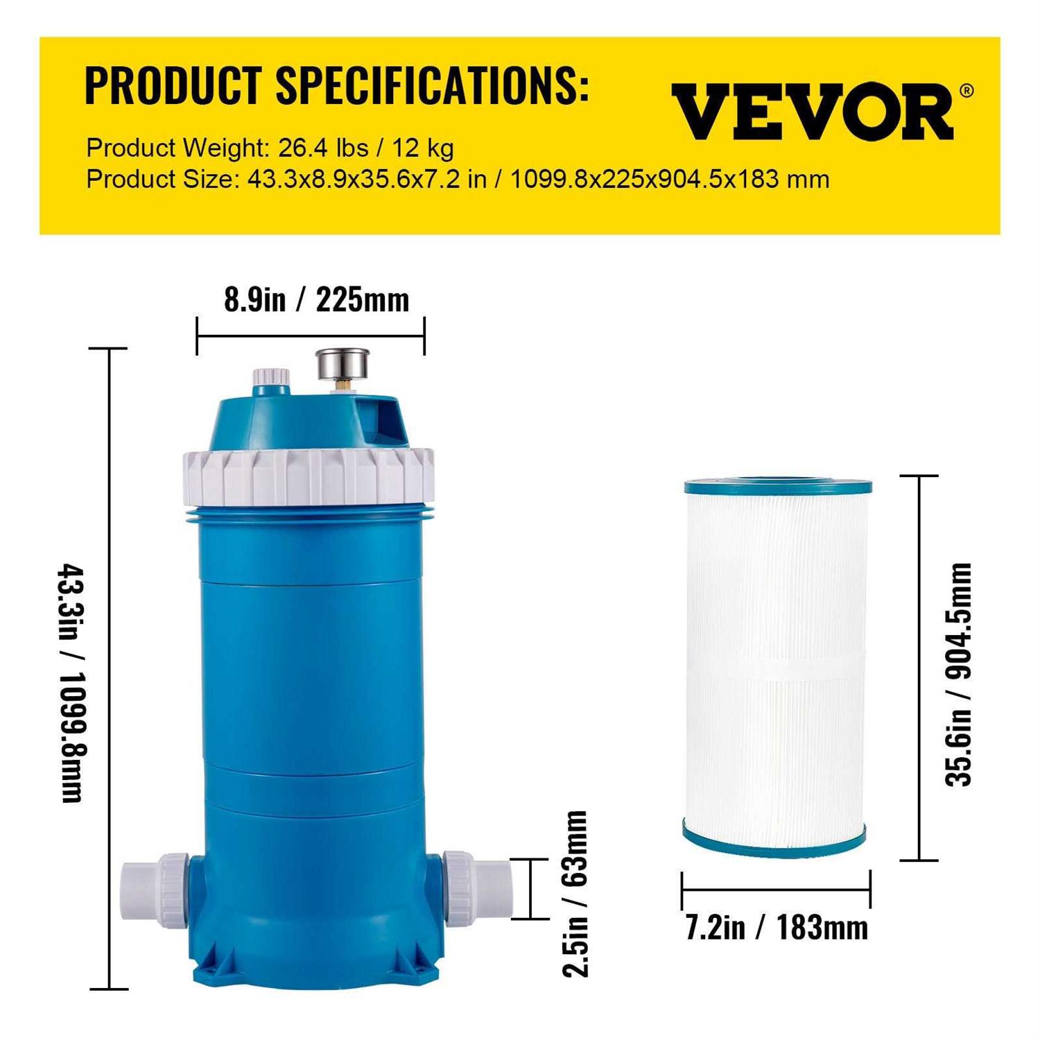 - Vevor Pool Cartridge Filter In/above Ground Swimming Pool Filter 50sq. Ft Filter