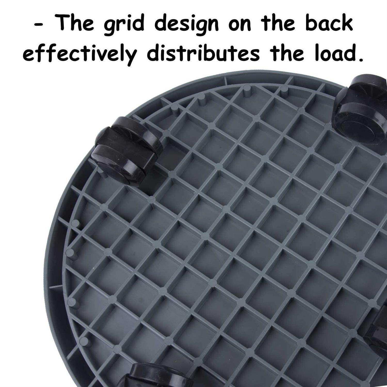 WanderingDonkey is a young brand and small business dedicated to providing gardening products for real enjoyment . You must use a suitable plant caddy for the job. Features- Made of tempered plastic and grid design on the back, it can bear more weight.- The matte non-slip surface is easy to clean, and the flowerpot will not tip over as it moves.- 4 Fully universal wheels for easy maneuverability. And all wheels are silent, no noise from indoor movement.- Easy to roll on decks, terraces, hard floors or carpets. Very suitable for indoor and outdoor use.- No assembly required.Sweat Tips- Please check the weight of your potsand the size of the bottom to choose the right caddies.- No drain holes.