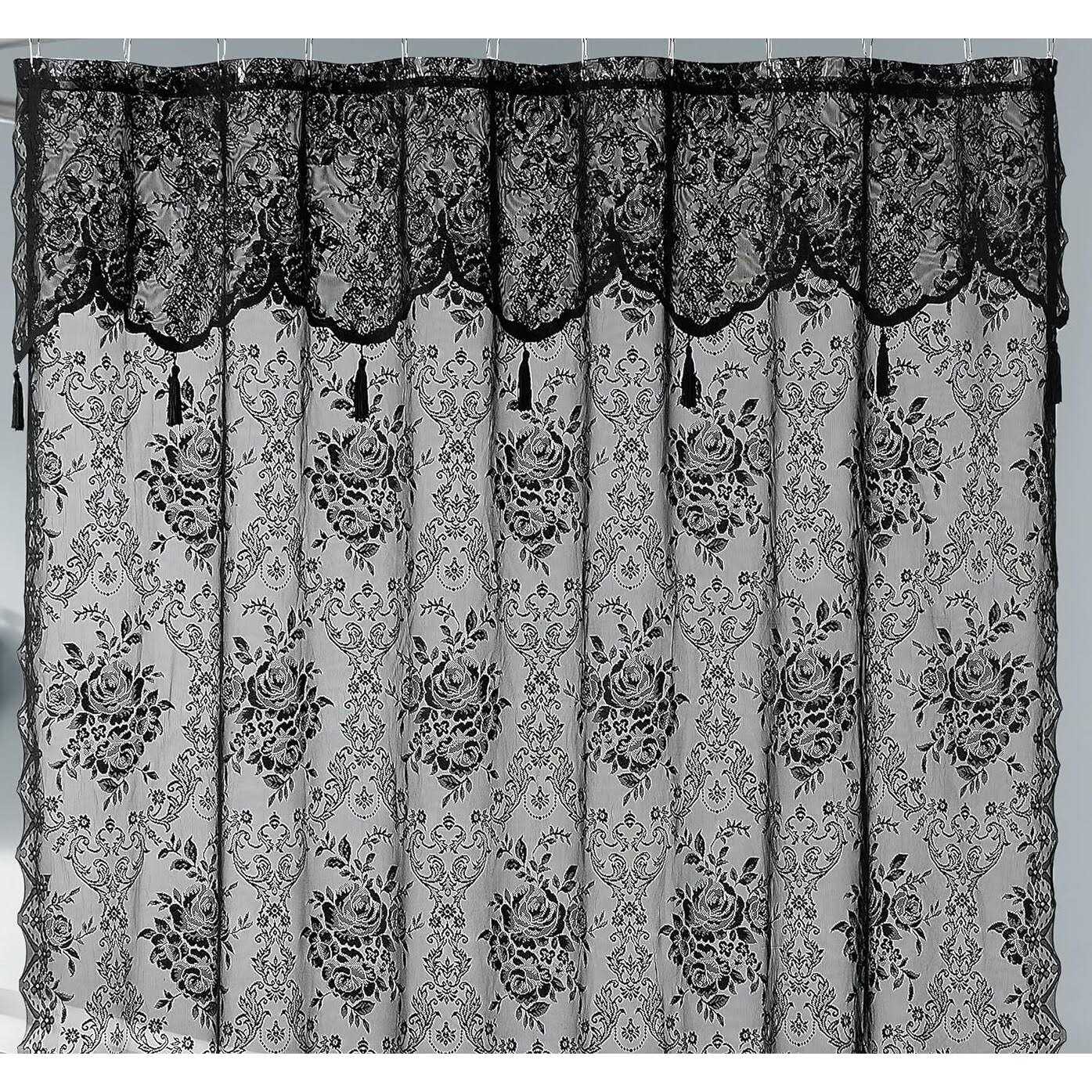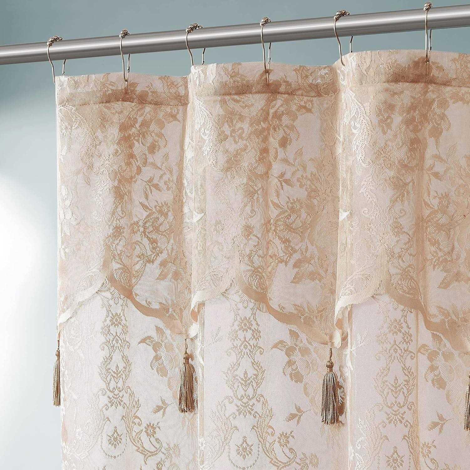 Warm Home Designs Lace Shower Curtain with Attached Valance & 7 Tassels