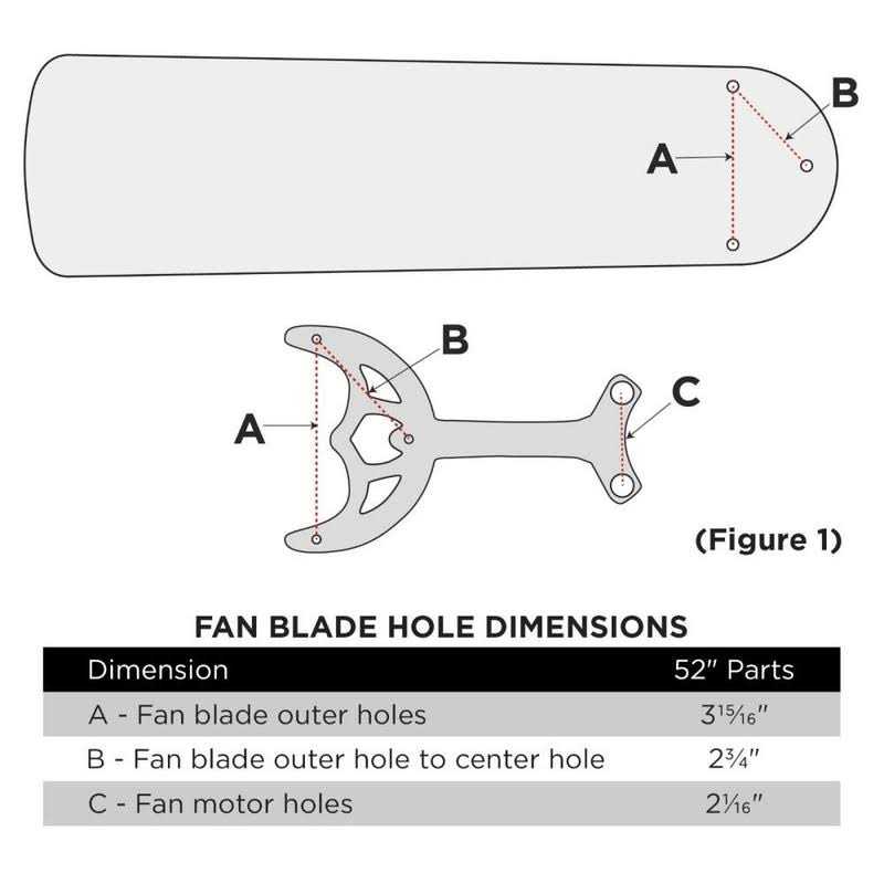 - Fan blade outer hole to center hole 2-3/4-inches; C