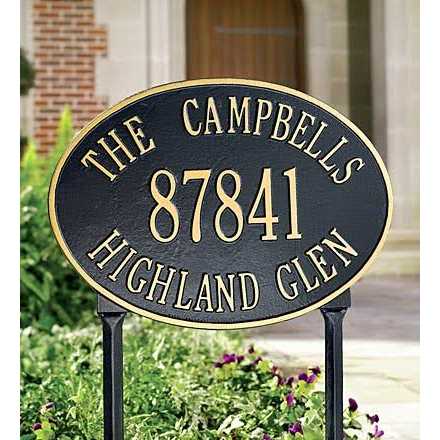 Whitehall Hawthorne Oval – Standard Lawn – Three Line Address Plaque ( Black/Gold)