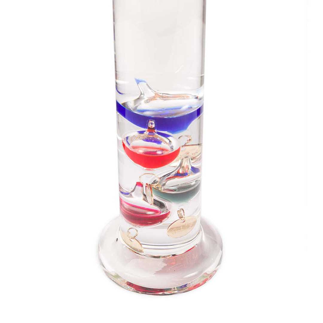 - This gorgeous Galileo thermometer is a work of art with blown glass balls of varying colors in a delicate blown glass cylinder.