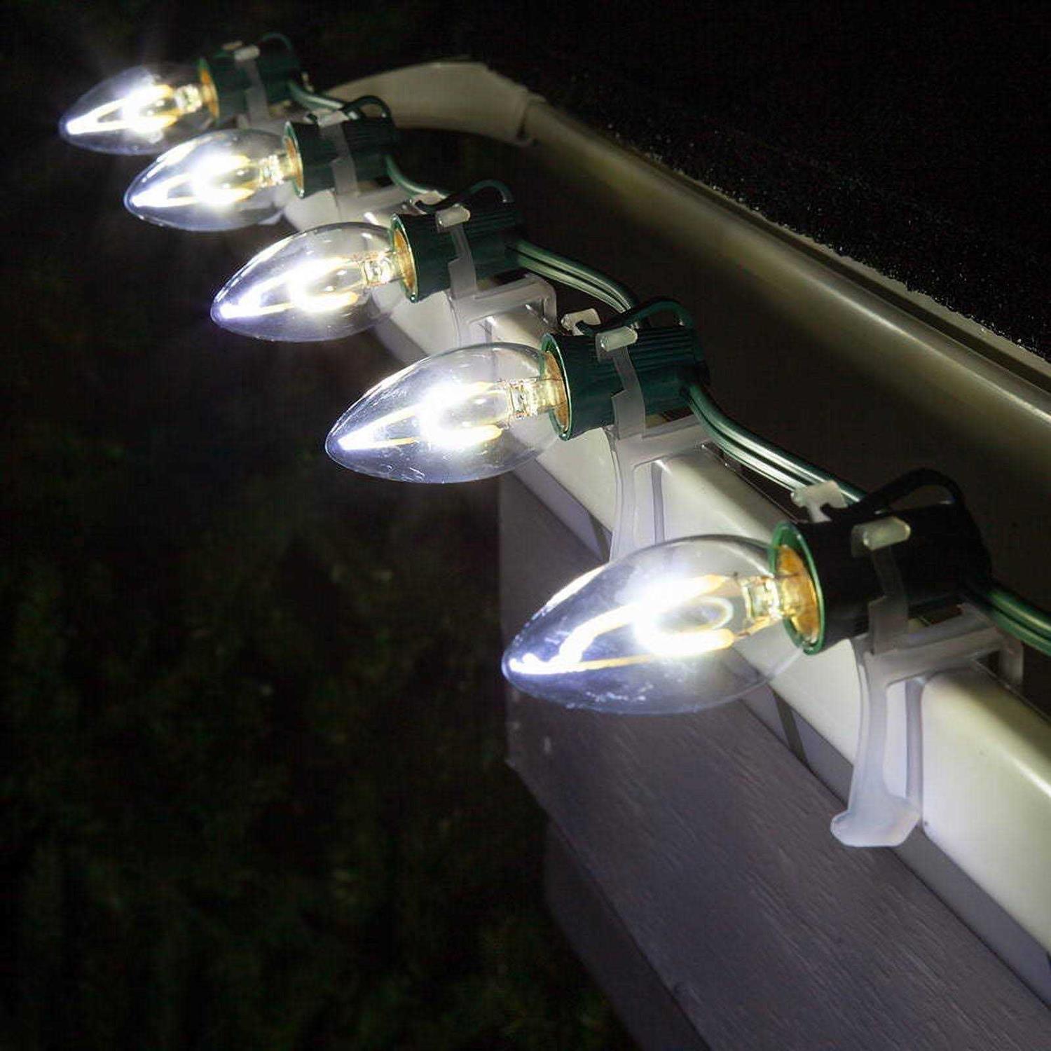 Flexible filament LED bulbs represent the ultimate marriage of beauty and technology. Curved filaments lined with LED diodes provide the nostalgic look of old-fashioned incandescent bulbs. But LED technology makes these filaments energy efficient and durable. Clear bulbs are the most popular of light colors, casting a brilliant warm glow over parties and events while inviting relaxing conversations.Cool White C9 LED bubs, steady lights. Bulbs are rated for up to 60,000 hours of life, which means great looking bulbs that last for years. Nickel bases prevent corrosion, which means bulbs last longer and require less maintenance. LED bulbs draw up to 90% less power than incandescent bulbs, allowing you to safely make longer runs of light while saving time and energy. Reduce greenhouse gases by choosing environmentally friendly lighting that saves on power. Bulbs only, light stringer sold separately. Use with E17 – Intermediate stringer. Indoor / Outdoor use.