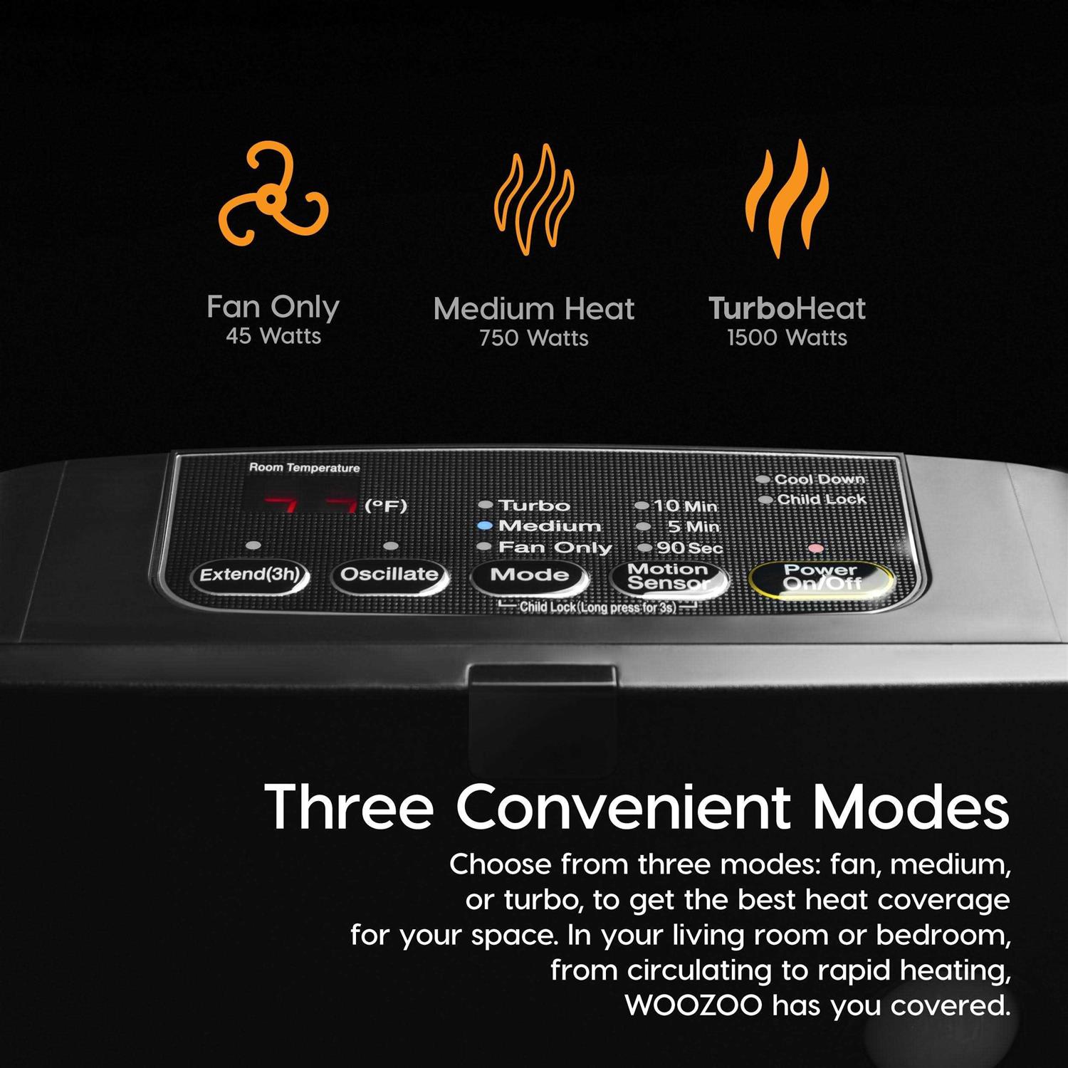 WOOZOO Portable Electric Heater Oscillating Fan with Motion Sensor