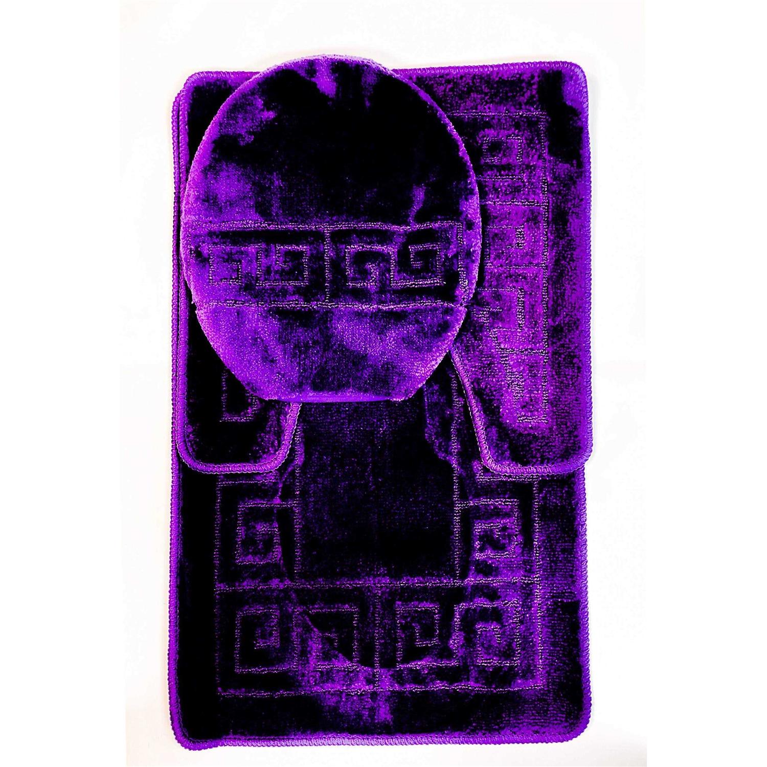 WPM 3 Piece Bath Rug Set Pattern Bathroom Rug (20 inchx32 inch)/large Contour Mat (20 inchx20 inch) with Lid Cover (Purple)