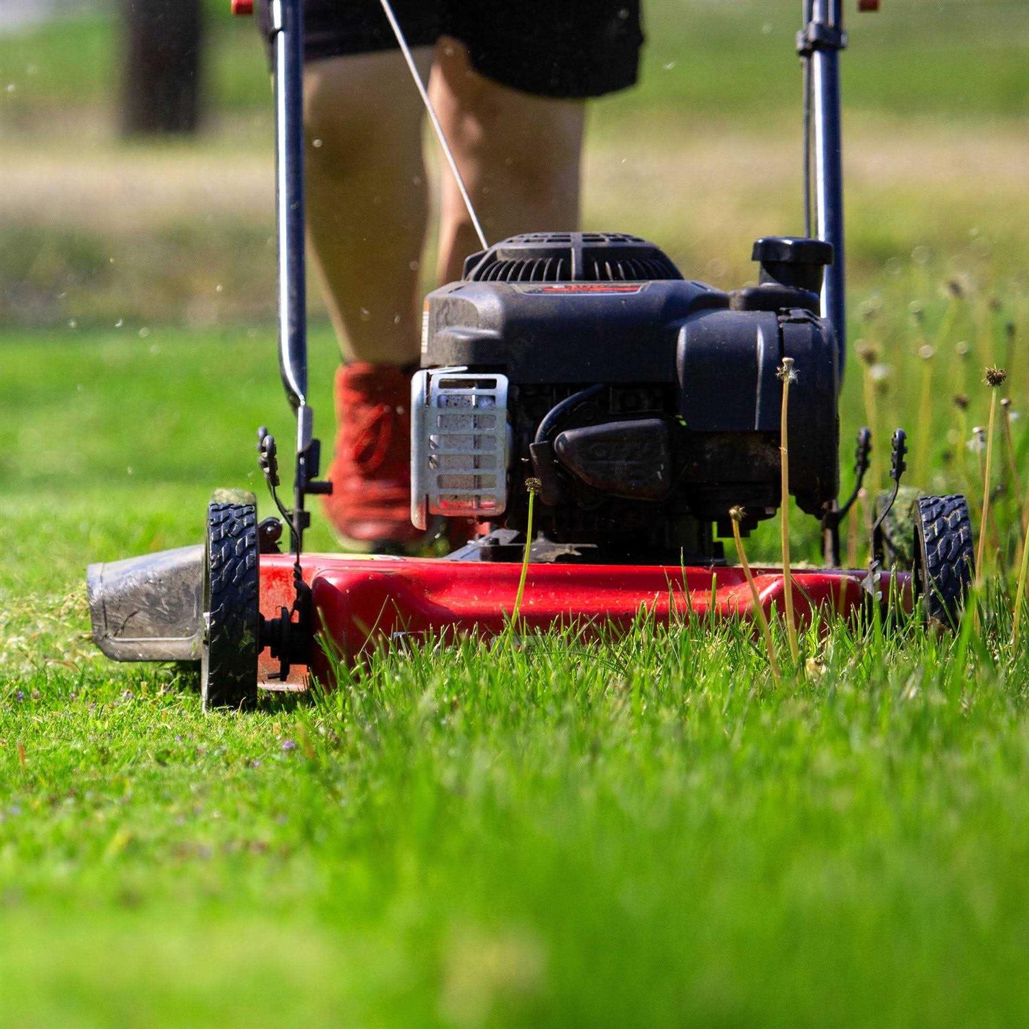 - 20 in. cutting path lets you cut a wide area of lawn with each pass